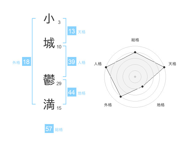 小城 鬱満さんの総格は57画の4点!