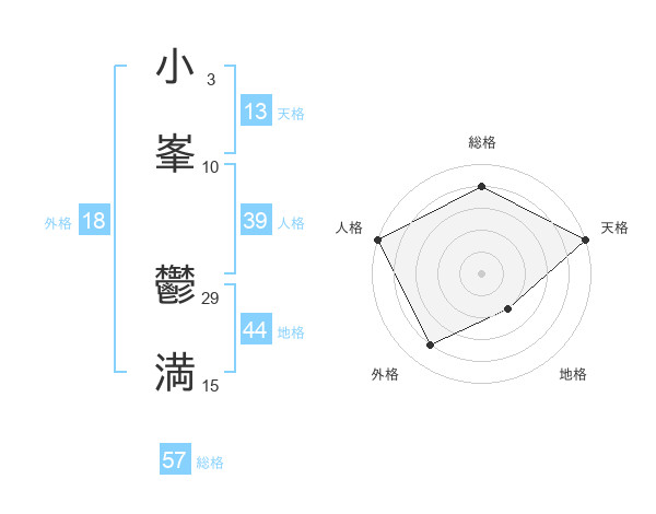 小峯 鬱満さんの天格は13画の5点