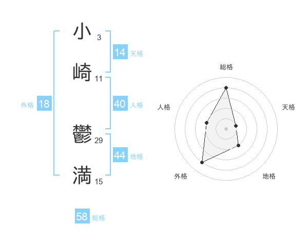 小崎 鬱満さんの総格は58画の4点!