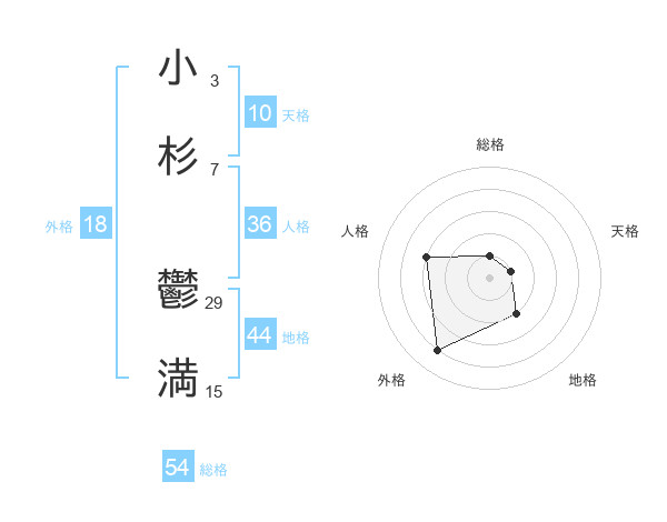 小杉 鬱満さんを姓名の画数から五運を鑑定