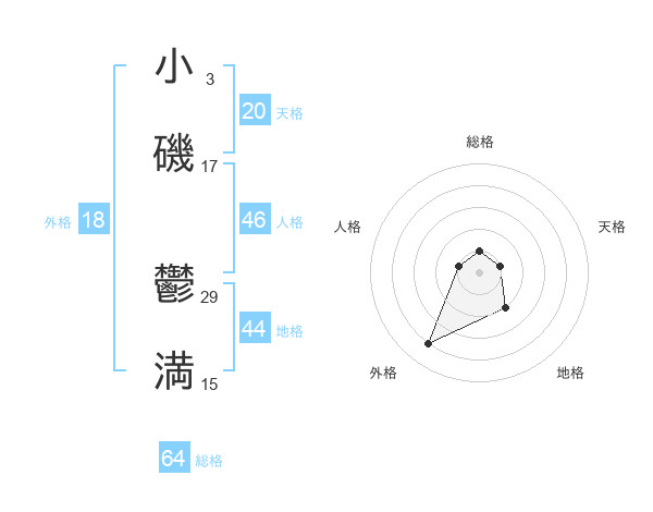 小磯 鬱満さんの総格は64画の1点!