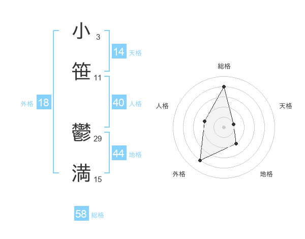 小笹 鬱満さんを姓名の画数から五運を鑑定