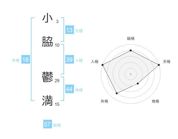 小脇 鬱満さんの天格は13画の5点!
