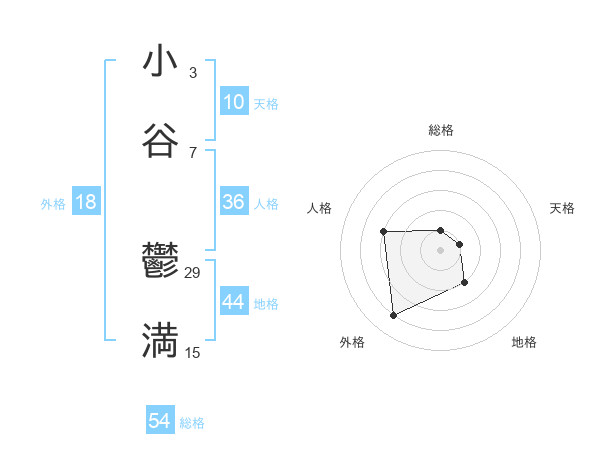 小谷 鬱満さんの総格は54画の1点!