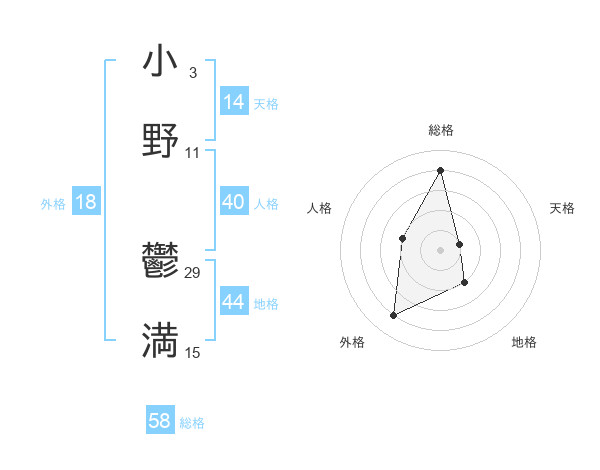 小野 鬱満さんの総格は58画の4点!