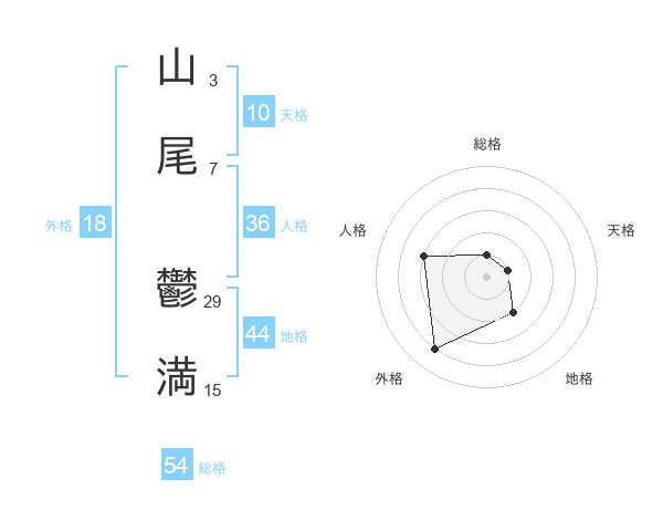 山尾 鬱満さんを姓名の画数から五運を鑑定