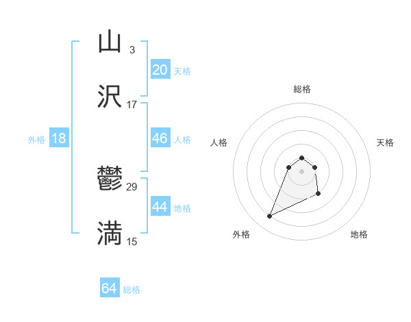 山沢 鬱満さんを姓名の画数から五運を鑑定