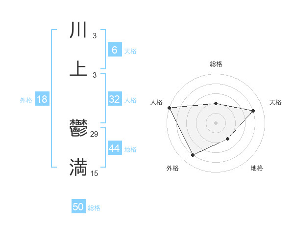 川上 鬱満さんの総格は50画の2点!