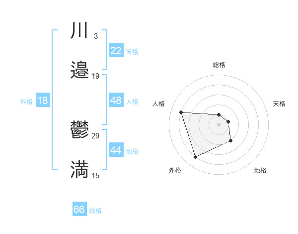 川邉 鬱満さんの総格は66画の1点!