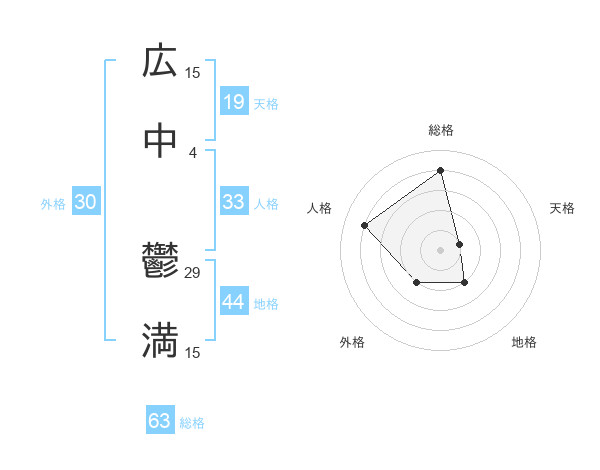 広中 鬱満さんの総格は63画の4点!