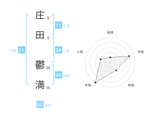 庄田 鬱満さんを姓名の画数から五運を鑑定