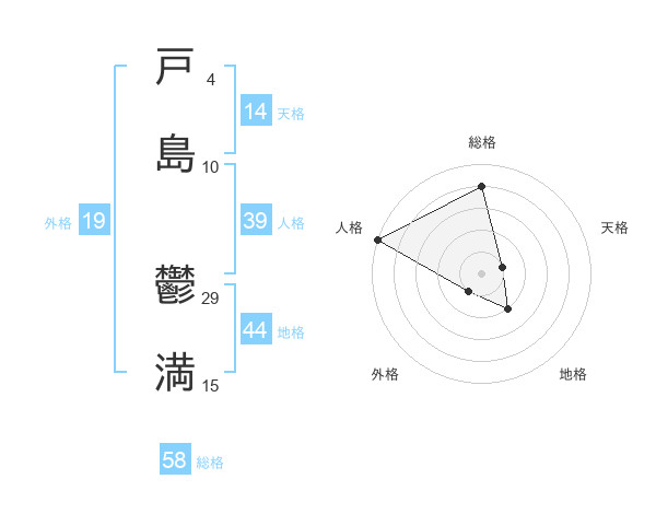 戸島 鬱満さんの総格は58画の4点!
