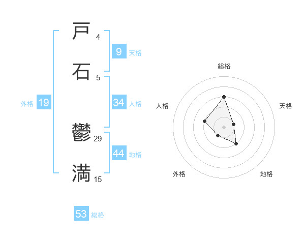 戸石 鬱満さんの総格は53画の3点!