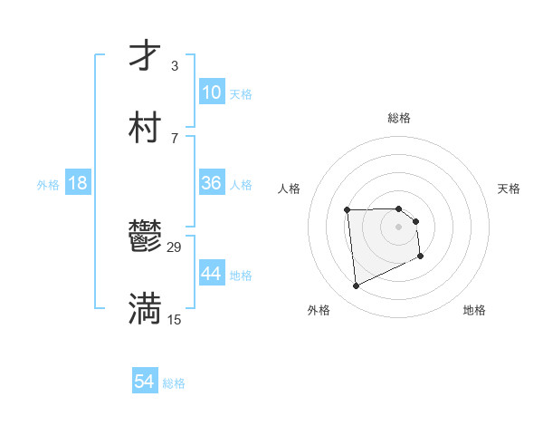 才村 鬱満さんの総格は54画の1点!