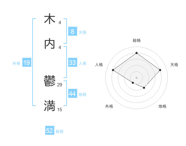 木内 鬱満さんを姓名の画数から五運を鑑定