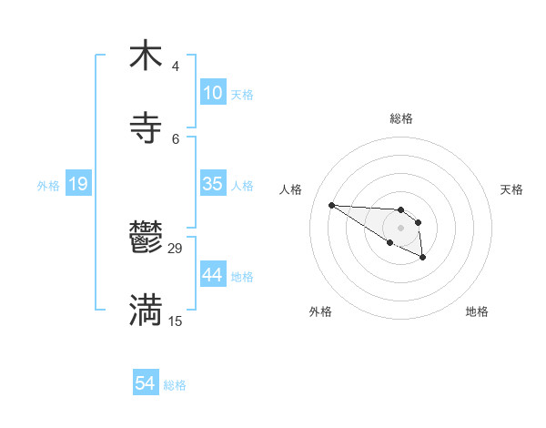 木寺 鬱満さんの総格は54画の1点!