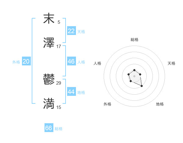 末澤 鬱満さんの総格は66画の1点!