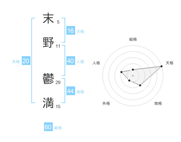 末野 鬱満さんの天格は16画の5点!