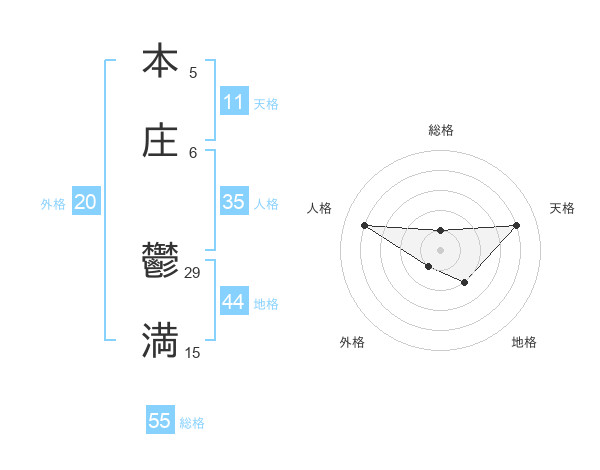 本庄 鬱満さんの天格は11画の4点!