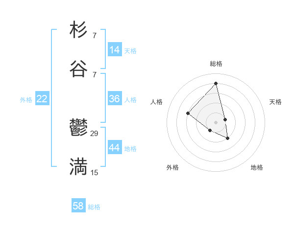 杉谷 鬱満さんを姓名の画数から五運を鑑定
