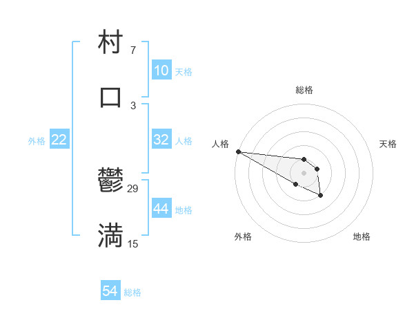 村口 鬱満さんの外格は22画の1点!
