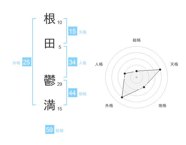 根田 鬱満さんを姓名の画数から五運を鑑定