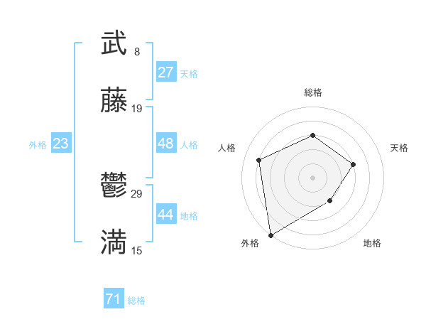 武藤 鬱満さんの総格は71画の3点!