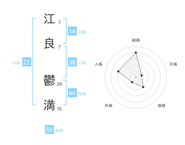 江良 鬱満さんを姓名の画数から五運を鑑定