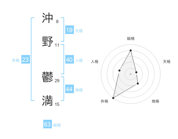 沖野 鬱満さんの総格は63画の4点!