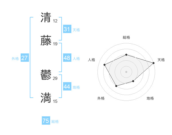清藤 鬱満さんの天格は31画の5点!