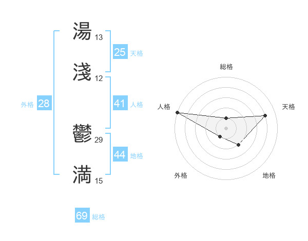 湯淺 鬱満さんの天格は25画の4点!