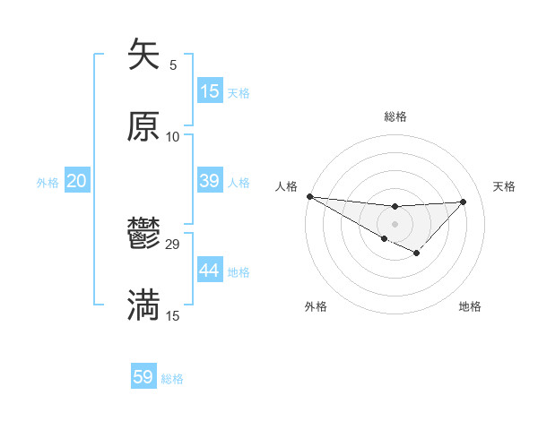 矢原 鬱満さんの天格は15画の4点!