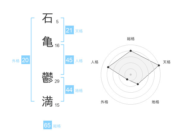 石亀 鬱満さんを姓名の画数から五運を鑑定