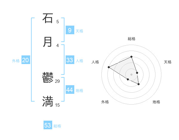 石月 鬱満さんの総格は53画の3点!
