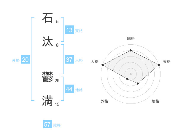 石汰 鬱満さんを姓名の画数から五運を鑑定