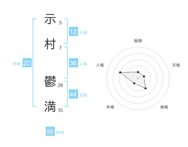 示村 鬱満さんを姓名の画数から五運を鑑定