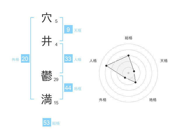 穴井 鬱満さんを姓名の画数から五運を鑑定