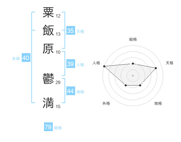 粟飯原 鬱満さんを姓名の画数から五運を鑑定