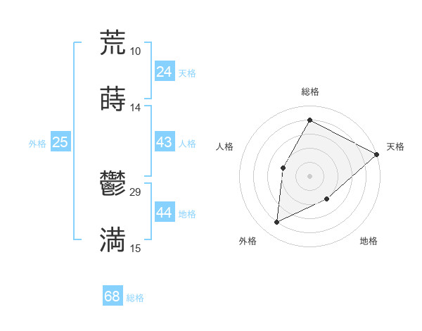 荒蒔 鬱満さんを姓名の画数から五運を鑑定