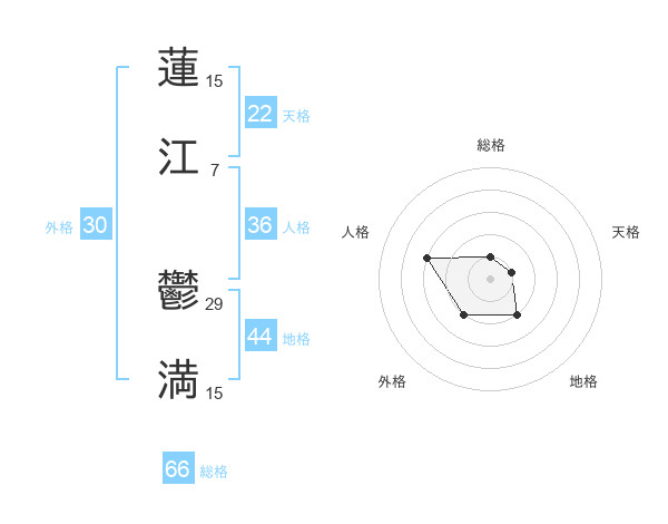 蓮江 鬱満さんの総格は66画の1点!