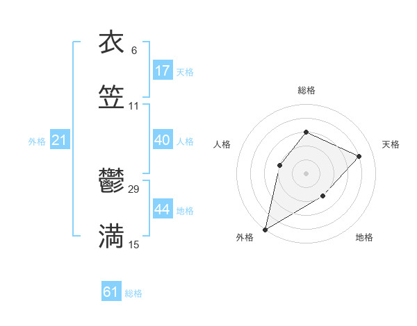 衣笠 鬱満さんの外格は21画の5点!