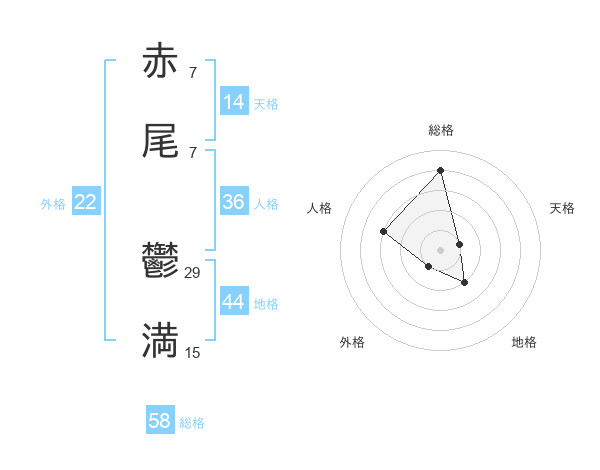 赤尾 鬱満さんを姓名の画数から五運を鑑定