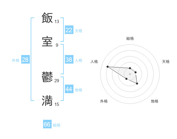 飯室 鬱満さんを姓名の画数から五運を鑑定