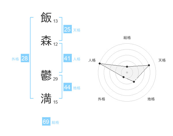 飯森 鬱満さんを姓名の画数から五運を鑑定
