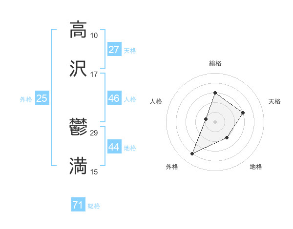 高沢 鬱満さんを姓名の画数から五運を鑑定
