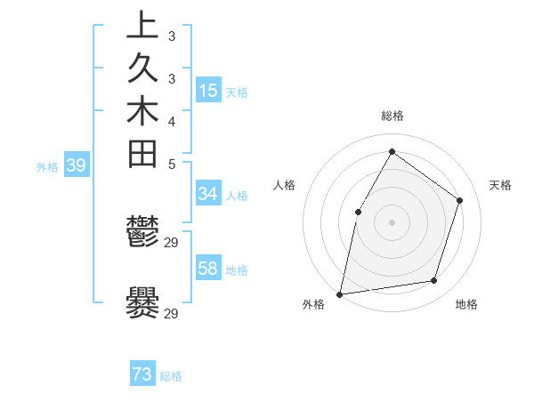 上久木田 鬱爨さんの総格は73画の4点