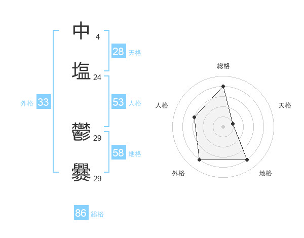 中塩 鬱爨さんを姓名の画数から五運を鑑定