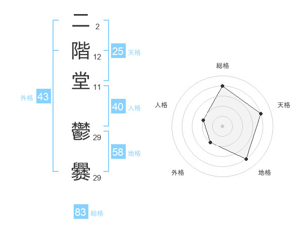 二階堂 鬱爨さんを姓名の画数から五運を鑑定