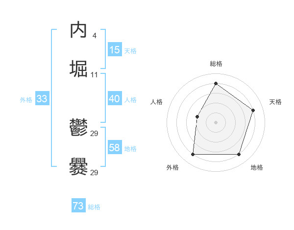 内堀 鬱爨さんを姓名の画数から五運を鑑定