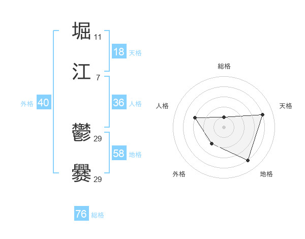 堀江 鬱爨さんの総格は76画の1点!